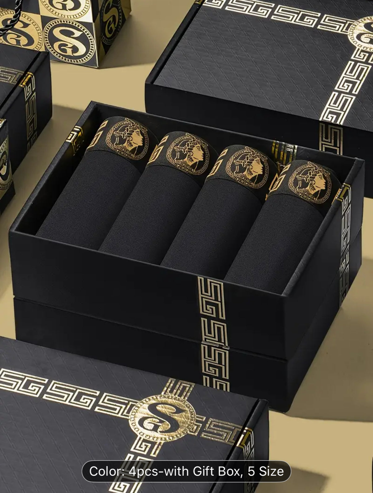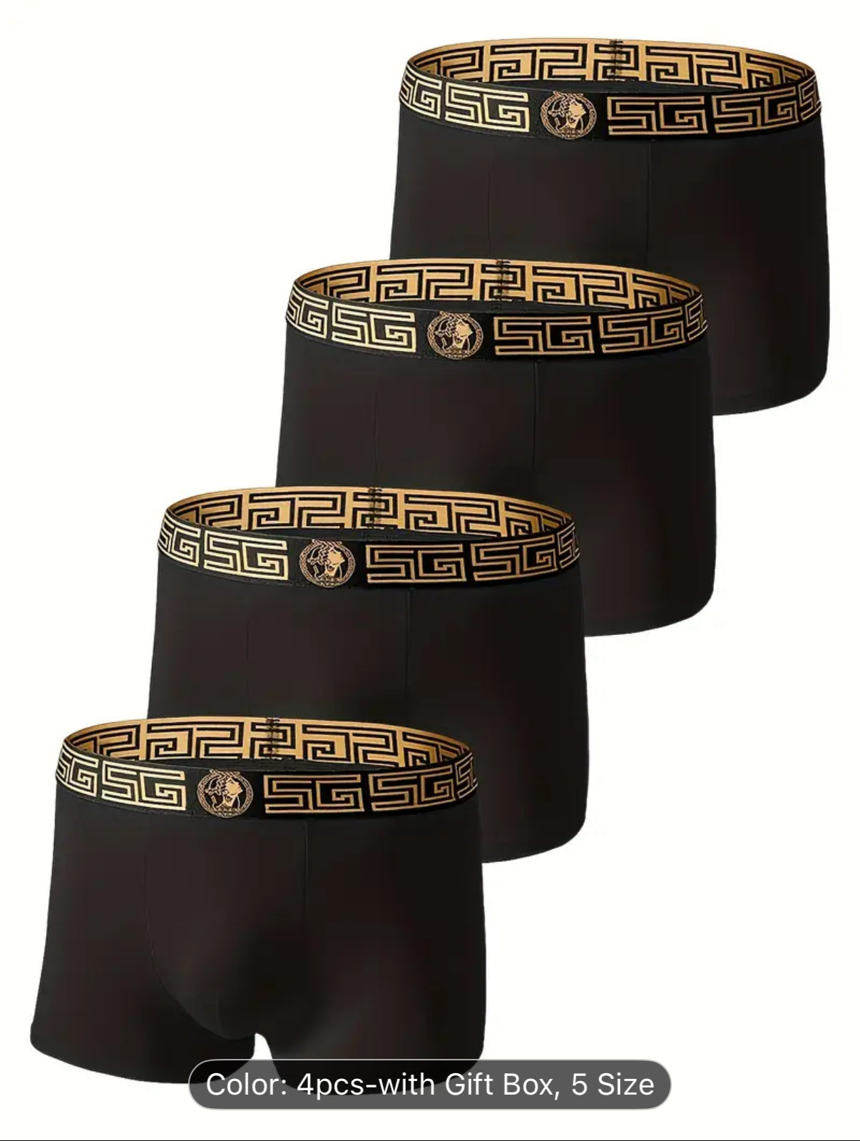 4pcs Black and Golden Boxer Briefs - Soft, Breathable Viscose, Comfortable Daily Wear for Men, Slim Fit with Elasticity, Solid Color Design, Casual Underwear|Boxer Briefs|Boxers as a Gift