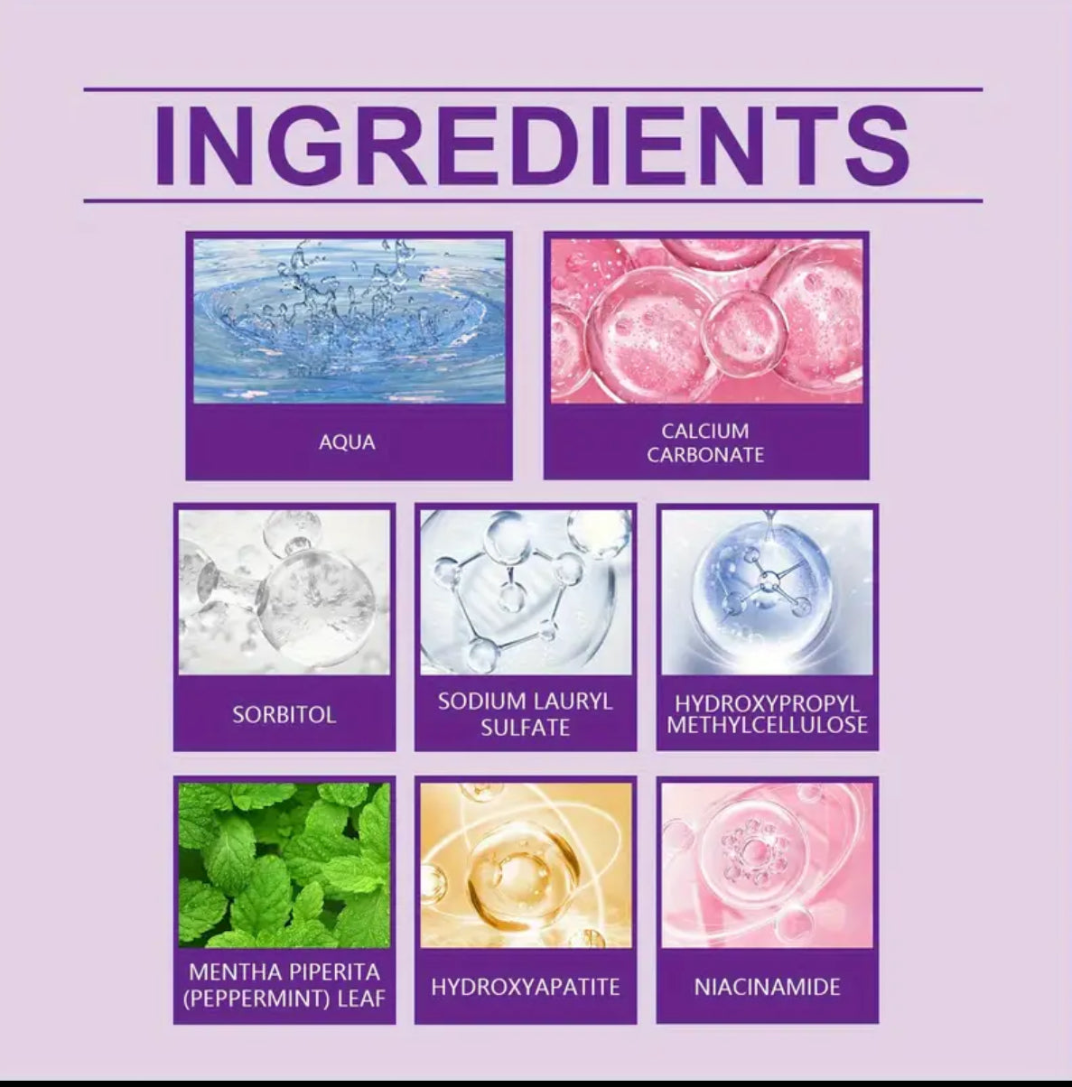 9D White Toothpaste for Deep Cleaning & Brighter Smile, Purple Hydroxyapatite Toothpaste - European Formula with Minty Fresh Breath, Gentle on Gums, Travel-Size 100g/3.52oz, Ideal Oral Hygiene Gift for Women & Men, suitable for everyday