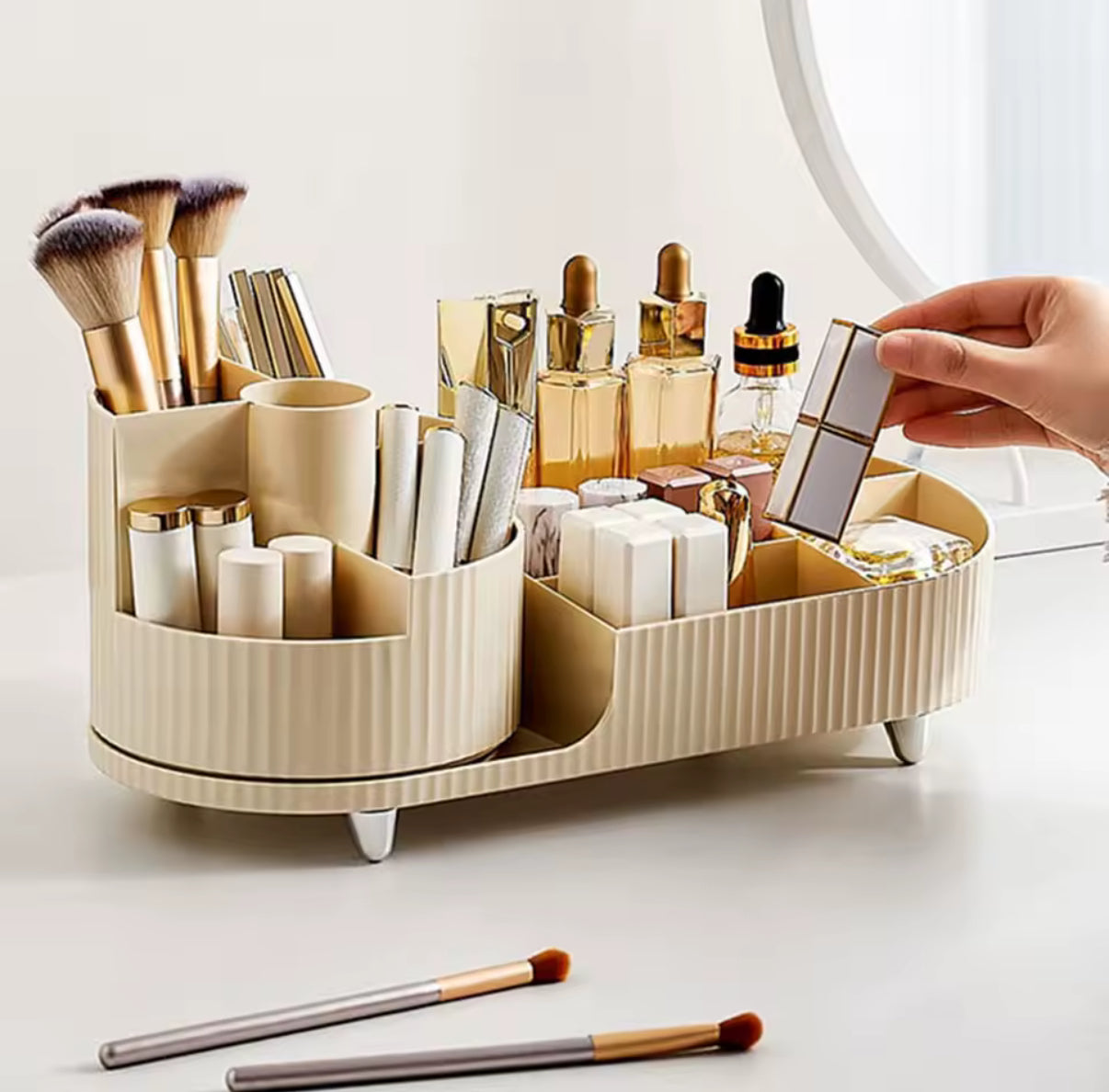 Cosmetic Storage Rack with Rotating Base and Divided Compartments for Cosmetic Storage Box, for Lipstick, Skin Care Storage Box